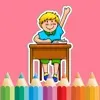着色书 儿童的学校:像一个女孩,铅笔,铅笔盒,书本,书包,黑板,多的多张图片应用简介